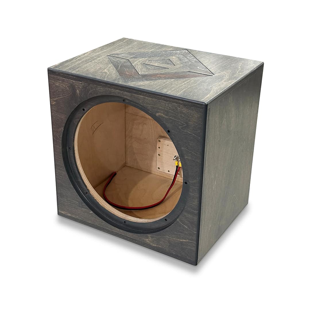 At Adire Audio the goal with the “branded series” enclosures is to offer a well build, well performing and good looking enclosure at an affordable price. Using premium ¾” Russian Baltic Birch all around and an even thicker, 1″ baffle, we are able to achieve a very strong and light enclosure. Using our refined assembly process produces an enclosure with NO visible screw holes anywhere on the enclosure. The entire enclosure is glued together with Titebond III and our 1″ baffle is thick enough to handle subwoofer setups up to 1500W. Finished off with our carbon gray stain and a polyurethane finish these enclosures have a unique look to set it apart from all the generic prefabs. Complete with Satin Nickel Brass binding posts and prewired with OFC 10g wire, you are ready to go the moment it arrives. These are also built with love, by hand right here in the UNITED STATES OF AMERICA.