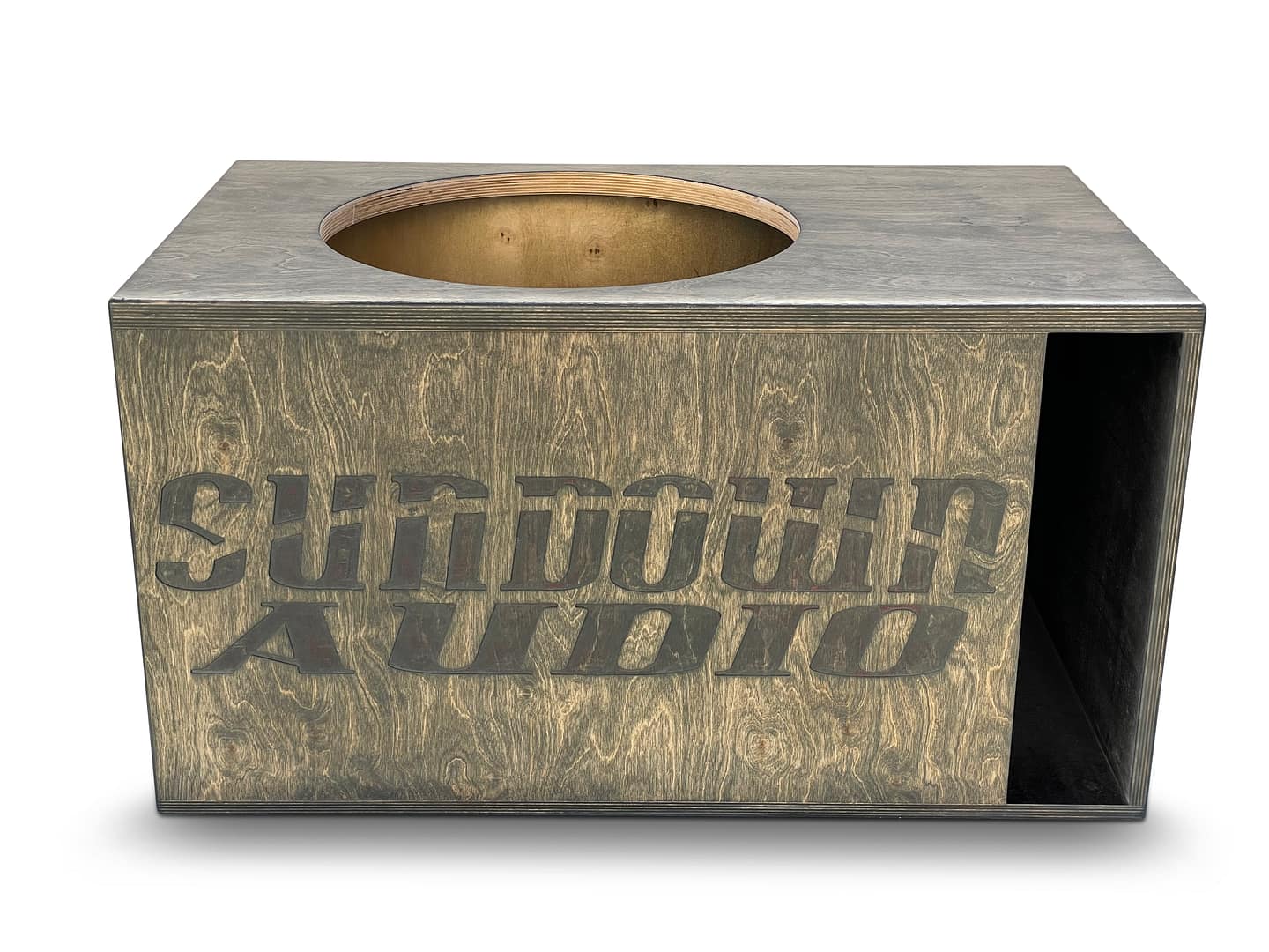 Lead time is 2-3 weeks, no refunds once enclosures have been cut out! This is a custom made box specifically for a Sundown Audio SAv2 18″ subwoofer.