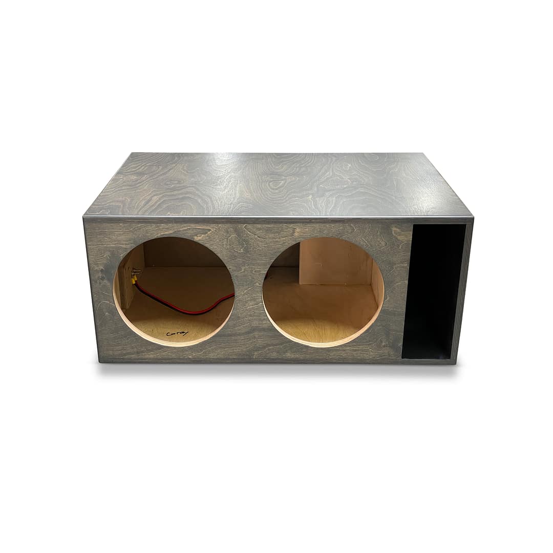 At Adire Audio the goal with the “performance series” enclosures is to offer a well build, well performing and good looking enclosure at an affordable price. Using premium ¾” Baltic Birch all around with a 1” baffle for added baffle strength, we are able to achieve a very strong and light enclosure. Using our refined assembly process produces an enclosure with NO visible screw holes anywhere on the enclosure. The entire enclosure is glued together with Titebond III and coupled with our 1” baffle and an additional 18mm baffle brace the enclosure is strong enough to handle subwoofer setups up to 3000W. Finished off with our carbon gray stain and a polyurethane finish these enclosures have a unique look to set it apart from all the generic prefabs. Complete with Satin Nickel Brass binding posts and prewired with OFC 10g wire, you are ready to go the moment it arrives. These are also built with love, by hand right here in the UNITED STATES OF AMERICA.