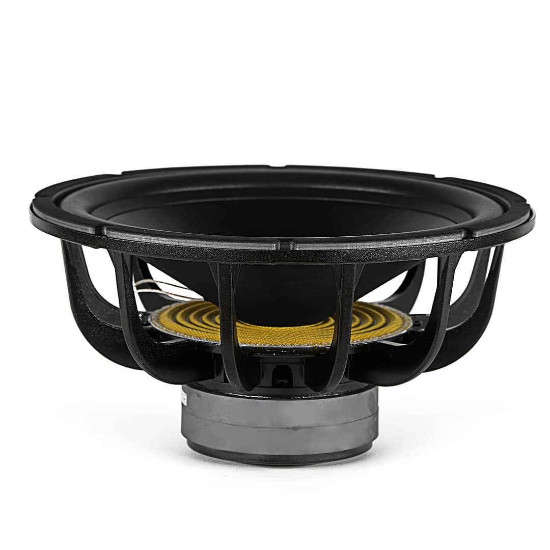 Returning to the Adire Audio lineup, the Tempest is the 15” big brother driver to the Shiva; offering high quality bass on a budget. Built in America, the Tempest features: an upgraded cast aluminum basket, large foam surround, Kevlar impregnated cone, flat progressive epoxy coated spider, 2.5″ diameter VC, over an inch of magnet, vented pole piece, and huge bumped back plate. The Tempest was designed with price and performance in mind. This understated, excellent performer has a rugged, industrial look that is an example of form following function. As with nearly all of our woofers, the Tempest is at home in a wide variety of enclosure types. The low Fs, moderate Q and moderate Vas allows for great performance in a wide range of both sealed and vented alignments.
