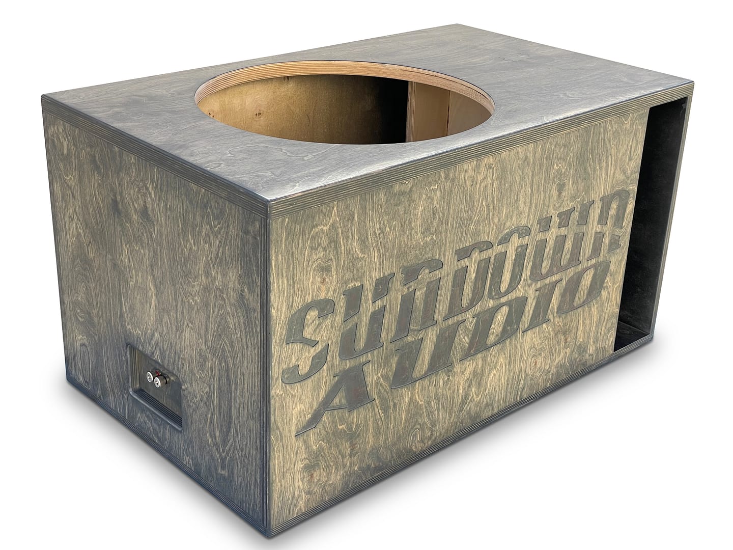 Lead time is 2-3 weeks, no refunds once enclosures have been cut out! This is a custom made box specifically for a Sundown Audio SAv2 18″ subwoofer.