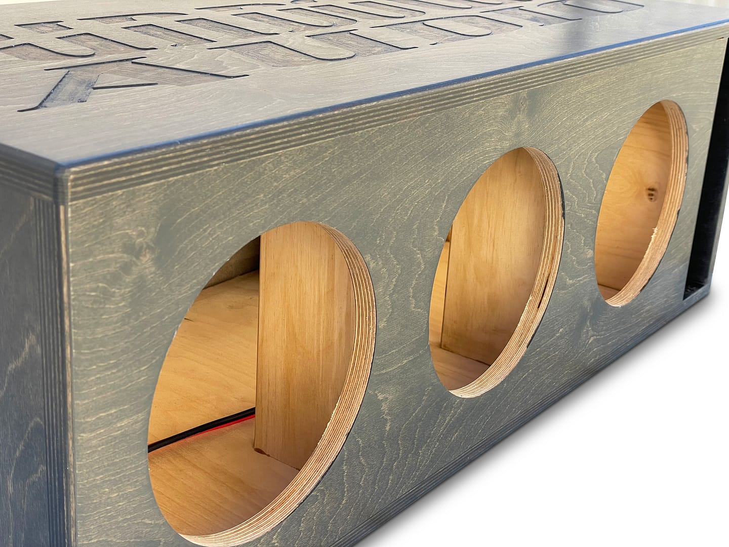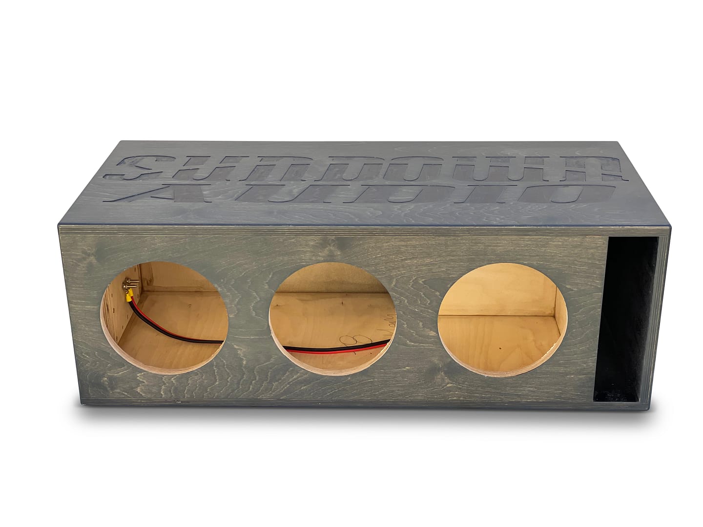 Lead time is 2-3 weeks, no refunds once enclosures have been cut out! This is a custom made box specifically for a trio of Sundown Audio Xv3 8” subwoofers.