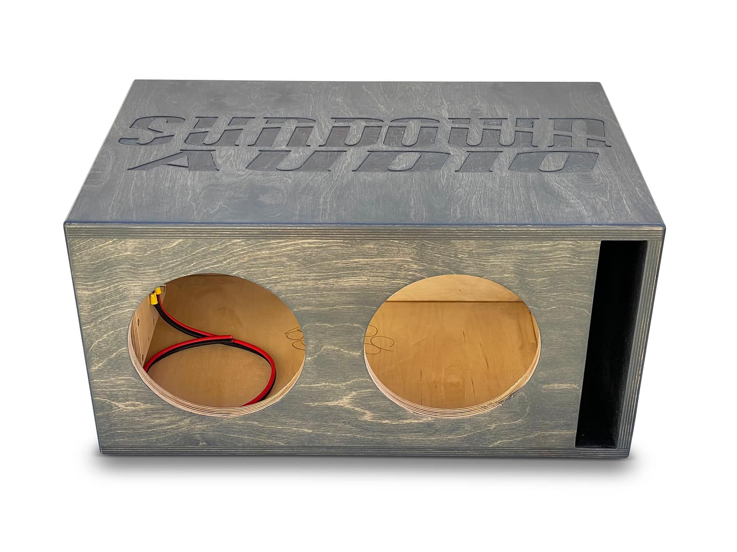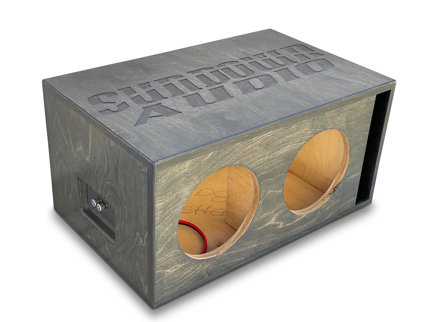 Lead time is 2-3 weeks, no refunds once enclosures have been cut out! This is a custom made box specifically for a pair of Sundown Audio SAv3 8″ subwoofers.