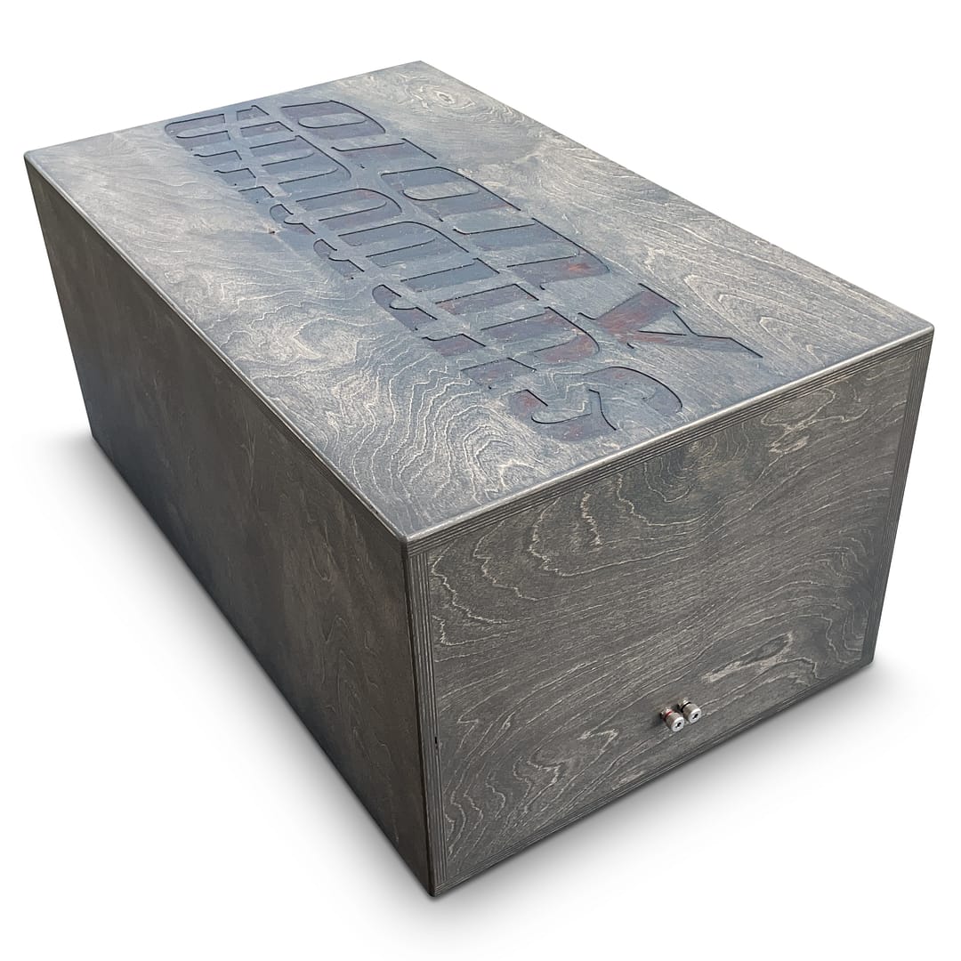 At Adire Audio the goal with the “branded series” enclosures is to offer subwoofer specific enclosure that are well build, well performing and good looking enclosure at an affordable price. Using premium ¾” Russian Baltic Birch all around and an even thicker, 1″ baffle, we are able to achieve a very strong and light enclosure. Using our refined assembly process produces an enclosure with NO visible screw holes anywhere on the enclosure. The entire enclosure is glued together with Titebond III and our 1″ baffle is thick enough to handle subwoofer setups up to 3000w. Finished off with our carbon gray stain and a polyurethane finish these enclosures have a unique look to set it apart from all the generic prefabs. Complete with a recessed Satin Nickel Brass binding posts and prewired with OFC 10g wire, you are ready to go the moment it arrives. These are also built with love, by hand right here in the UNITED STATES OF AMERICA.