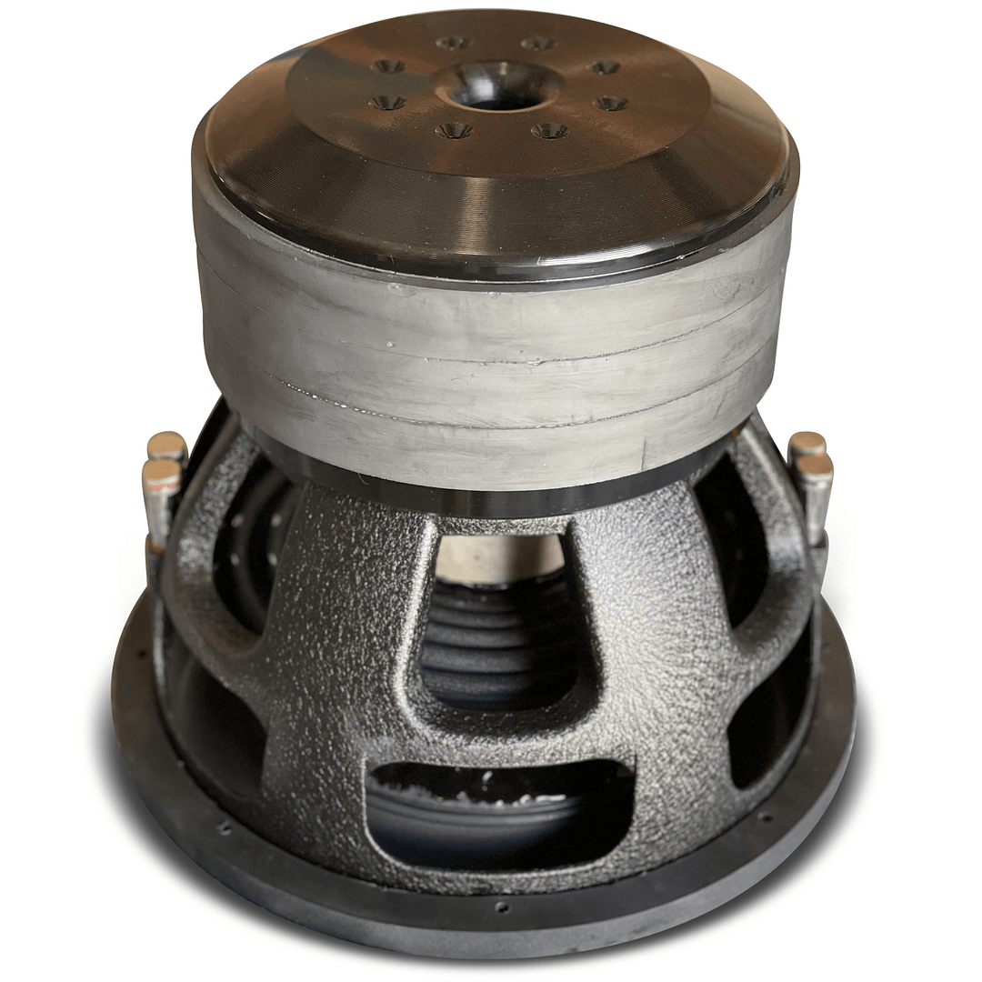 The KH2501 by Adire Audio is designed to meet the needs of the serious basshead that wants major output and power handling. With a massive USA wound 3″ voice coil for increase thermal capacity, we designed the rest of the motor from the ground up using FEA optimization. Using three ultra-high grade Y35 magnets the KH2501 has plenty of motor force and excursion potential. Our custom tooled progressive 3 layer 100% Nomex spider pack with triple sewn lead wires helps keep the moving assembly under control at extreme excursion levels. A non-pressed kraft pulp hybrid fiber blend cone body and a multi-layer foam surround keeps the KH2501 durable for your sonic enjoyment for many years to come. Finished off with 4awg push pin terminals and a laser engraved hydraulic pressed carbon fiber dust cap the KH2501 ready for the most extreme setups. The 12” features our custom tooled AA frame which features the highest marks in strength and clearances. The 2021 Kh2501 Series is designed for monster day driver system, and even competition use for those requiring high linearity and extreme power handling. From a punishing low end to the subtle nuances in your favorite kick drum track, the new Kh2501 delivers!