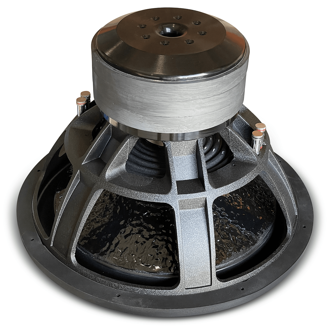 The KH2501 by Adire Audio is designed to meet the needs of the serious basshead that wants major output and power handling. With a massive USA wound 3″ voice coil for increase thermal capacity, we designed the rest of the motor from the ground up using FEA optimization. Using three ultra-high grade Y35 magnets the KH2501 has plenty of motor force and excursion potential. Our custom tooled progressive 3 layer 100% Nomex spider pack with triple sewn lead wires helps keep the moving assembly under control at extreme excursion levels. A non-pressed kraft pulp hybrid fiber blend cone body and a multi-layer foam surround keeps the KH2501 durable for your sonic enjoyment for many years to come. Finished off with 4awg push pin terminals and a laser engraved hydraulic pressed carbon fiber dust cap the KH2501 ready for the most extreme setups. The 12” features our custom tooled AA frame which features the highest marks in strength and clearances. The 2021 Kh2501 Series is designed for monster day driver system, and even competition use for those requiring high linearity and extreme power handling. From a punishing low end to the subtle nuances in your favorite kick drum track, the new Kh2501 delivers!